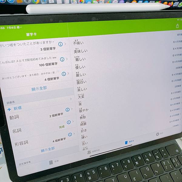 如果你想要看那種什麼功能、很完整分析的iPad Pro,網路蠻多了你可以去找,我真心沒在管iPad Pro的記憶體、ram還是啥的,因為我也不懂,我是真的覺得用起來很快、很方便啦,但真的不是很輕,同時,說真的,如果我沒有在學日文,我應該會更後悔買了iPad Pro,真的就會玩蠻誒啥用武之地,因為隨身真的你就只會用iPhone、加上我桌上電腦就是iMac,我不會再開iPad Pro來工作,然後我本來想說自己的MAC AIR大概六七年有了,想說要換了,是不是iPad Pro能取代MAC AIR,我覺得也還好,完全無法,看劇嗎...我家有電視以及Apple TV我真要看劇的話,我會投影到我家50吋的大電視看起來會更過癮,所以,這iPad Pro對我來說最後最後的作用,真的就是還蠻幫助我在日文學習的!哈哈哈哈,好險我現在有在學日文~所以就變成一種,有點後悔,又有點沒那喔後會的複雜感受心得!