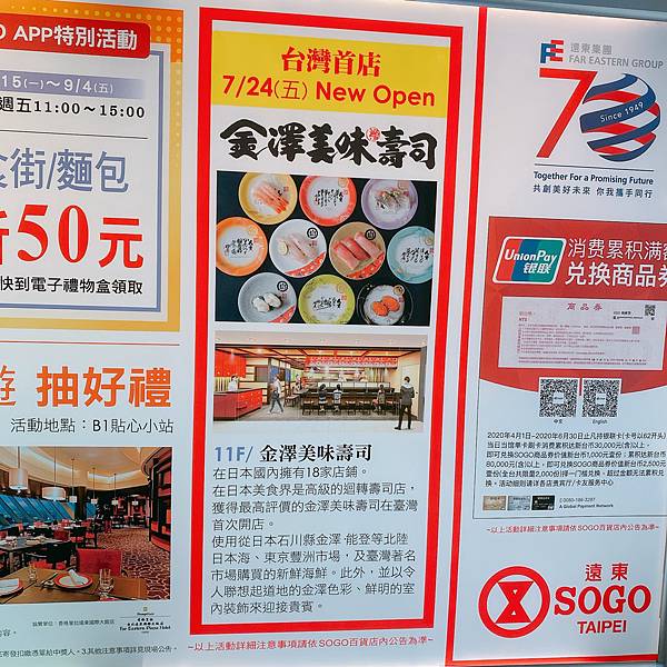 大概就這樣!總結來說~「金澤美味壽司」7/24就要在台北忠孝SOGO開幕了!然後美登利壽司最快8月也要開幕了,兩家都在台北東區,可以說是為台北東區注入全新活血外,也為東區市容帶來全新的質感面貌!