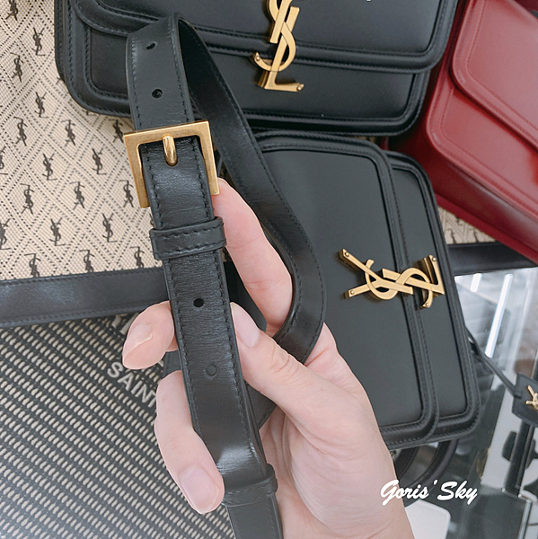 YSL旋轉腳SOLFERINO包揹帶的部分這次有特別加粗一點點,同時同樣黑金的設計,並且將孔做得更多,更方便調節長短。