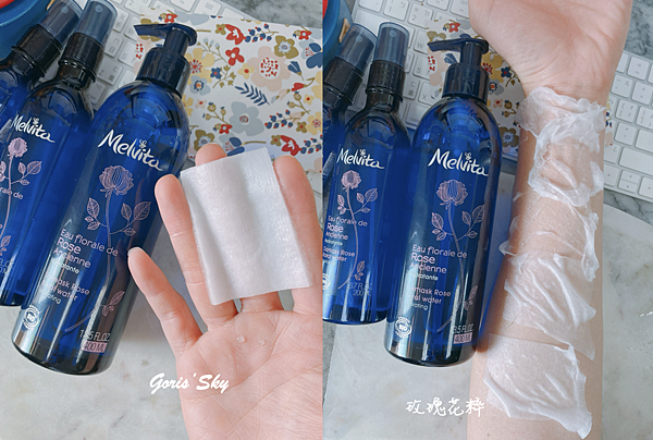 直接按壓400ml的玫瑰花粹,很快地就能浸濕整個化妝棉~也方便快速撕開一片一片去放在臉上濕敷!你看~是不是方便有夠多!加上400ml的容量特惠價換算下來也便宜蠻多,如果你習慣用花水,或是本來就是Melvita花粹、玫瑰花粹的愛用者,這樣400ml買下來是更划算實用。