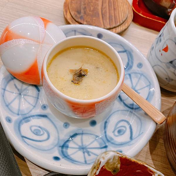 我額外加點的松露蒸蛋,店員說現點現做會比較久,但我跟你說!很值得~本來剛上桌看起來沒什麼對吧,好像只有表面一點點松露!但你看~:
