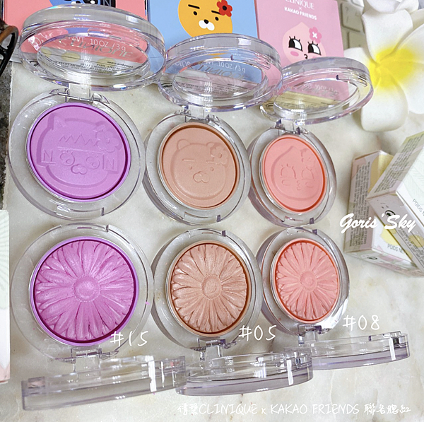 這次倩碧將最受歡迎的3色小花腮紅聯名KAKAO FRIENDS,包括韓國目前都還是熱銷NO.1的05 nude pop(奶油粉萊恩獅),可以說畫起來相當自然好駕馭,完全零失手,卻又能自然好看肌膚膚色;韓星閔孝琳所代言的08 melon pop(屁桃甜瓜橘),則是口耳相傳的社群媒體討論最夯色,清新裸透,但不失明亮的晨曦粉色,宛如晨間新生般的清新可人;在日本、台灣都相當受到歡迎,最熱賣,能夠修飾亞洲人容易偏黃,同時提亮的肌膚顏色為15 pansy pop(Neo藍貓紫羅蘭)其暈開後,能修正偏黃、暗沈的膚色,明亮同時顯白因此最受到歡迎!!!