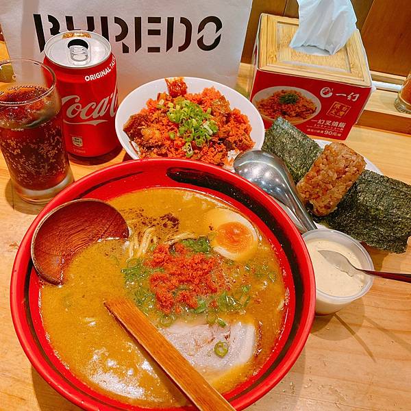 這個我自己吃還好,沒有很喜歡,吃起來就比較偏清爽方便為主,所以我覺得比較乾,但可能是在店家吃的關係吧,有那個蝦味湯頭太吸引人了,我把後來吃的飯糰大概一半放進拉麵湯裡吃拌一起覺得很好吃!