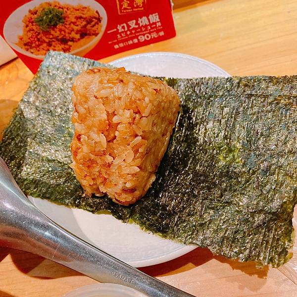 其實這是好吃的,不只有叉燒肉,甚至是還有滿滿的蝦末,吃起來也真的超蝦的!但就在我剛剛吃完蝦味飯糰都把飯糰拌進湯裡一起吃覺得很好吃,我就把湯頭拌在叉燒飯吃,一整個更好吃!所以我就覺得我點到叉燒飯有點浪費,因為我其實是愛吃拉麵湯泡飯,所以下次我會點白飯就好,用來配拉麵這樣!哈