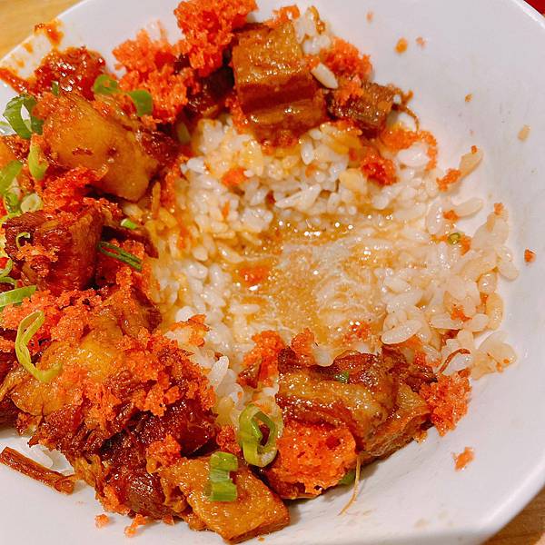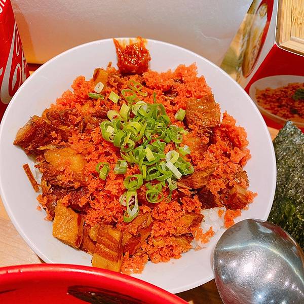 我個人是沒有很愛蝦味飯糰,以及我覺得我點的叉燒飯有點多餘,因為本身的蝦味拉麵湯頭很強,所以你應該配一碗白飯就可以了!配著拉麵一起吃、拌著湯吃,真的很幸福!