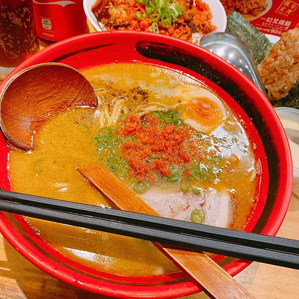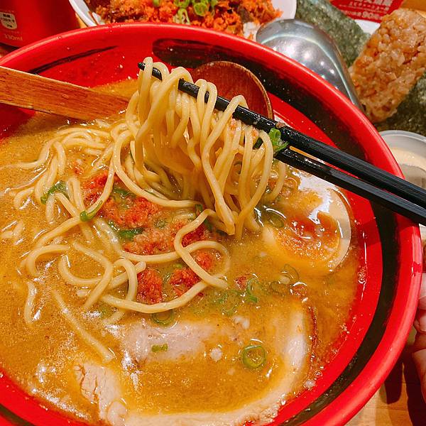 就在我吃了第一口拉麵的當下我就懂了!這湯頭太不得了了!那個我自己會煮蝦頭味噌湯的人都會懂這湯頭絕對是超級精華、熬製超久的傑作!有夠蝦、有夠濃潤,甚至是有夠甘甜的!加上那紅色蝦末的畫龍點睛,整個拉麵真的是愛蝦味的人會超級無敵愛!我自己是點店員推薦我最招牌的原味鮮蝦鹽味,說是台灣最受歡迎,也是大家都比腳能接受的,我一開始也很擔心會不會過鹹、過重,但我最後整碗拉麵湯有喝完自己都嚇到,因為太愛那鮮蝦甘甜的味道了!(有點鹹,所以有配可樂,也有被店家的冰水,但很是甘甜好吃!