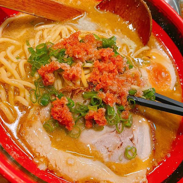 雖然名為原味鮮蝦醬油拉麵,但其實你看不太到整隻蝦,主要就是整個蝦的精華都熬製進這湯頭裡了超級精華!商麵除了有青蔥外,紅紅的那些就是蝦末,很提味也很香。