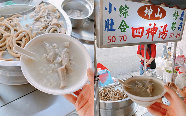 但我只想說就這台北萬華永豐銀行前的坤山四神湯,就是很台灣古早味的美食,也因為他們生意就很好,所以四神湯內料裡的那些粉腸、小肚,甚至是薏仁我每次吃都覺得處理得很乾淨、很新鮮,那個口感、鮮嫩度都很好,所以我才一整個好幾年下來都還是很愛。