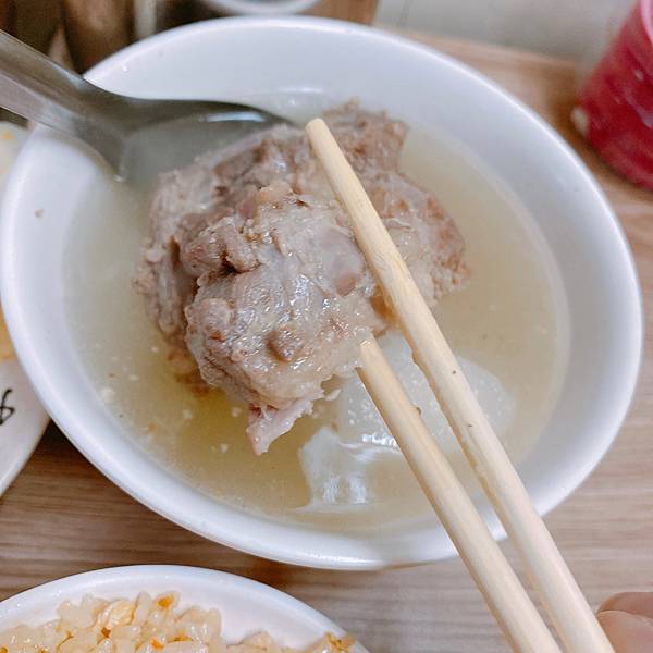 重點是絕對必點的原汁排骨湯!!!這個天氣喝真的太暖胃~太好喝了!那一整塊排骨完全不用擔心都是骨頭沒肉之類,超多肉!!!再者,就是整鍋湯不只用許多的排骨去熬煮,還有放上大量的菜頭,整個湯可以說鮮甜無比,喝完喝不夠都還可以免費續湯你說佛不佛!!!!如果女生不想吃那麼多肉的話,單點菜頭湯也可以只要30元!!!!!!