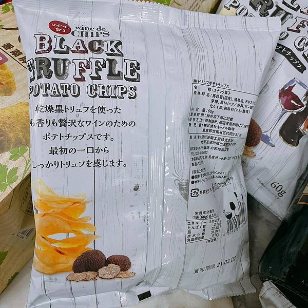 特別使用了乾燥黑松露,而且黑松露的味道和香氣都可以說是相當濃厚!而且是特別為了搭配紅酒所誕生的洋芋片,從吃的第一口開始就能夠感受到實實在在的松露氣息!