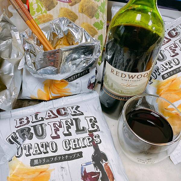 媽呀不用飛日本!!!除了全新「香菜胖胖酥」台灣終於可以吃到這傳說中日本新品上市才不到個月就狂銷逾5萬包的「黑松露洋芋片」台灣終於上了!!!這我之前在日本朋友幫我寄東西有塞一包給我真的好好吃,重點是打開就滿滿松露香氣外,不會太鹹,順口,也不會膩,重點是配紅酒好搭喔!很推咖樂迪他們家的美國 Redwood 卡本內蘇維濃紅葡萄酒,便宜、CP值超高,但完全不會喝起來廉價感,這超可以作為平常下班來一杯的小確幸,搭配黑松露洋芋片一整個大人高質感的下午茶!好有質感好爽快!