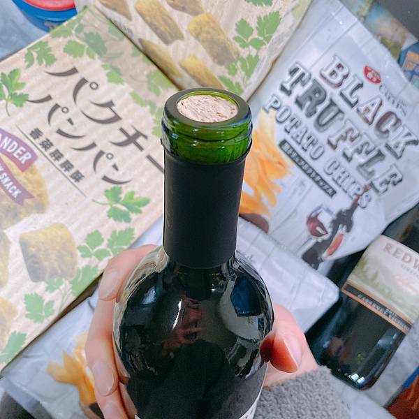 咖樂迪他們家最推、懂的人絕對知道,很質樸順口的味道,而且好入門超讓人驚艷的高CP值,看到那價格你真的會"哇"一聲!的美國 Redwood 卡本內蘇維濃紅葡萄酒,其帶有李子、黑櫻桃果實香氣又帶有些許煙燻的氣息,豐富的果實味與恰到好處的單寧,非常滑順易入口,完全不會太澀,很適合剛開始嘗試的人,配個松露洋芋片有夠搭的~加上配黑松露洋芋片真的世界無敵搭,你就想像一天工作都有夠老娘的有夠辛苦了,回家倒一杯紅酒、配一包黑松露洋芋片不是有夠享受的嗎?哈哈再搭一下香菜胖胖酥完全多層次的酥脆口感,兩種極致的美味!