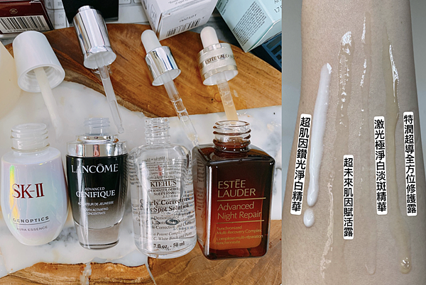 請注意,先不管哪瓶精華更好用或是更有效?我挑選的關鍵點在於"入門"、"人生第一瓶"等,就是作為對保養可能比較還沒有太多概念,但又在預算有限下,價格也是專櫃精華中入門的價格(都不超過5000,最便宜2000初),然後又要進階到專櫃品牌,而且是專櫃中也是至少用過的八九成都會表示滿意的,以及最重要的都是這四罐我少說人生至少用超過10罐以上了,才進而被我挑選出來。