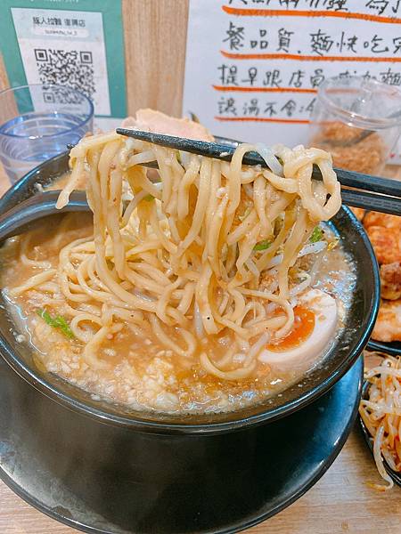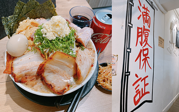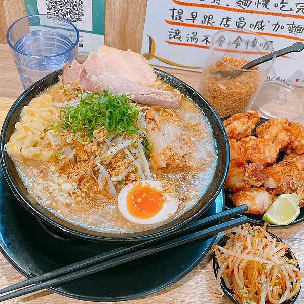 你看我這碗爆盛到會不會有點太給他豐盛!但他下面疊起來的主要是豆芽菜唷,就是讓其整個拉麵可以更平衡更清爽的關鍵,還有那入口即化的叉燒、溏心蛋、筍乾等等,搭配有夠有嚼勁的中捲麵,吃完有夠飽也有夠滿足,價格真的也有夠實在、有夠爽快!!!想念日本的話可以去吃吃,店家保持距離座位沒有很多,但都可以外帶也很方便!!!