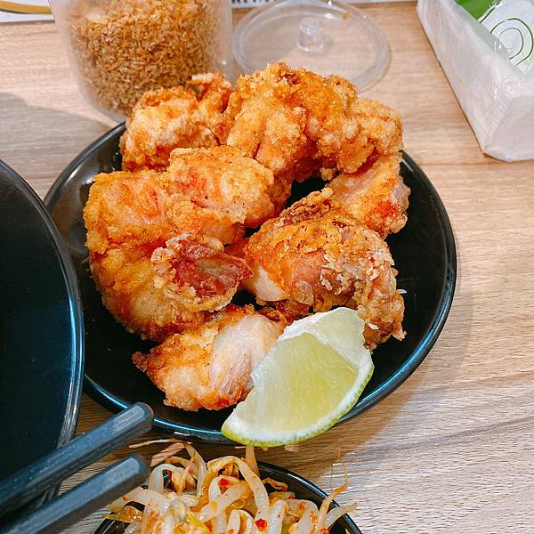 唐揚炸雞不過不失,配有1/4檸檬,吃起來爽口、清爽。