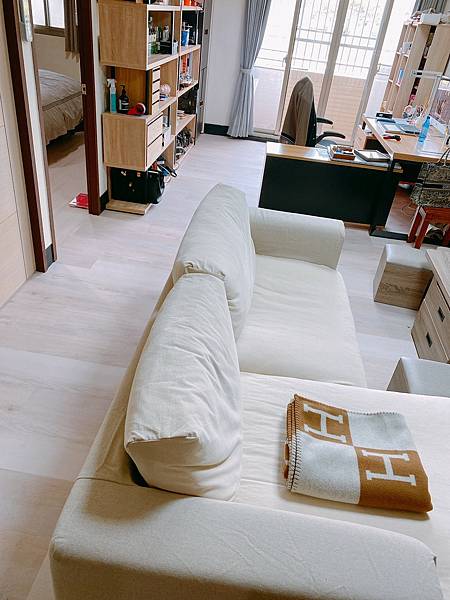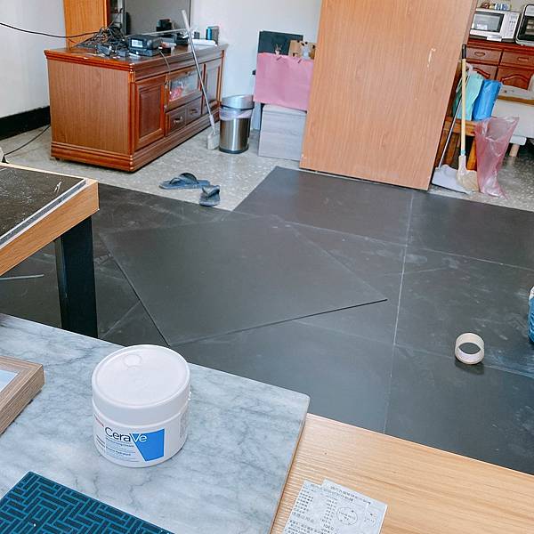 因為我不想把東西搬出去,所以在做地板前,就是分區把傢俱集中,做到哪鋪到哪,以及如果你沒有把傢俱搬出去的話,通常是需要另外給師傅傢俱的移動費用,但我覺得這還好,方便就好。