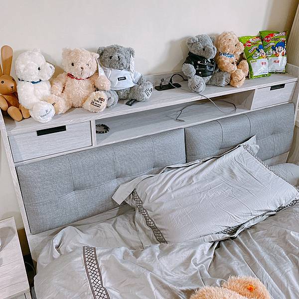 床頭部分也是分開買的,單純喜歡那兩個有燒發靠墊的設計,頭去撞到也比較不會痛。