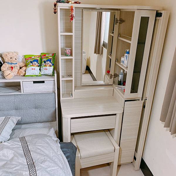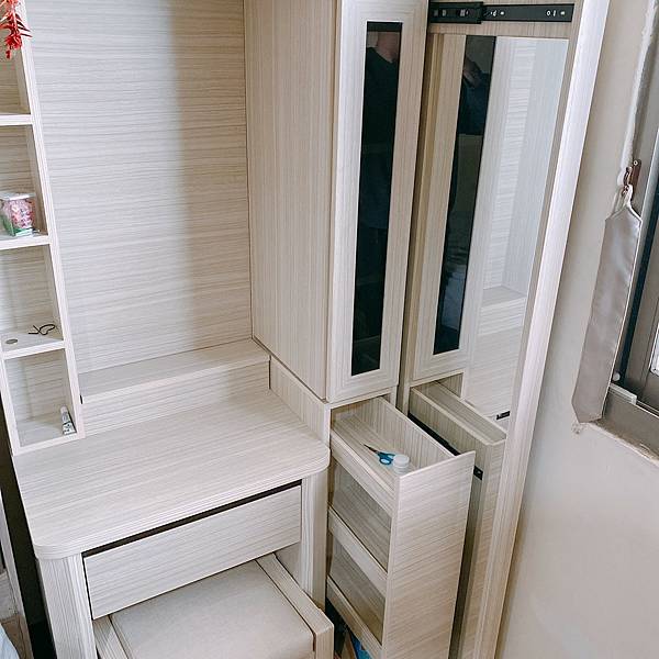 比較特別的設計是右邊拉出來可以做全身鏡,就完全不用再買全身鏡了非常方便。