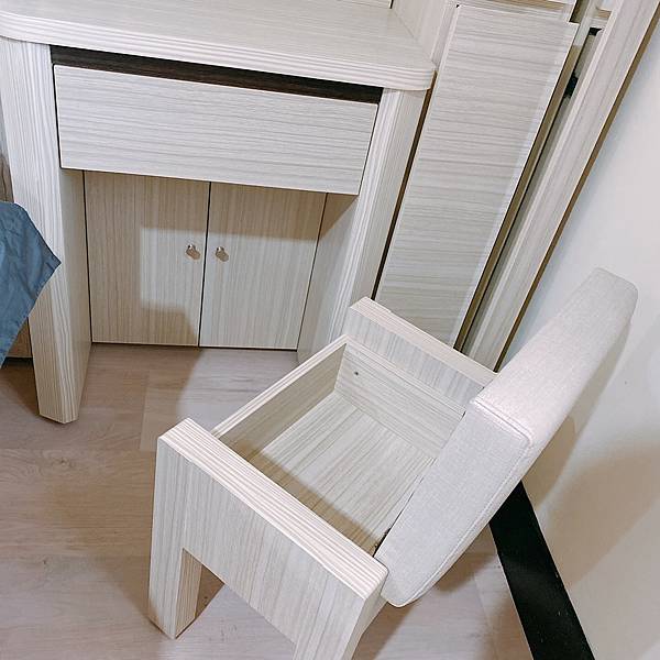 下方則還有一個大抽隔間外,附的椅子很有巧思的打開椅背,還能作收納,相當方便!完全生活智慧王的空間運用!