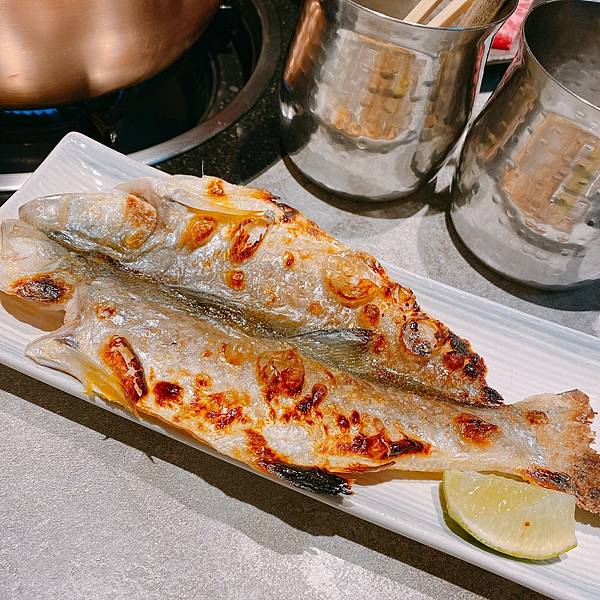 店家招待的烤魚,一共兩隻,就是很日式居酒屋那種新鮮鮮甜,烤到非常透、很香很好吃。