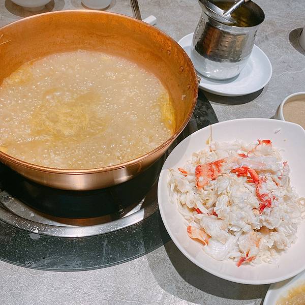 右邊這盤就是剛剛其餘的部位煮熟後,店員取出的蟹肉,基本上你要直接吃是可以,但剛吃完一堆蟹腳會有點膩,所以拿來煮粥最是好了!