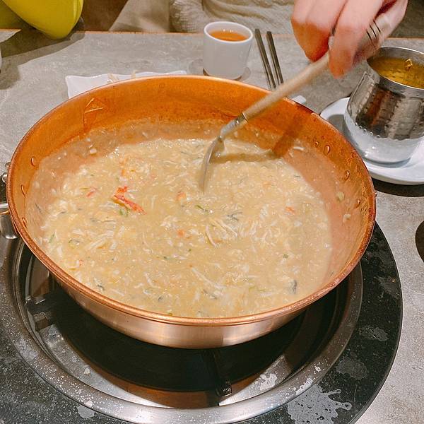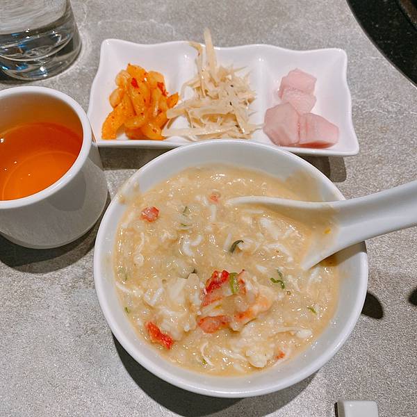 特別是如果你來橘色都只點肉沒有點海鮮,肉煮完的高湯,其實拿來煮粥我說真的很普通也不太好吃。