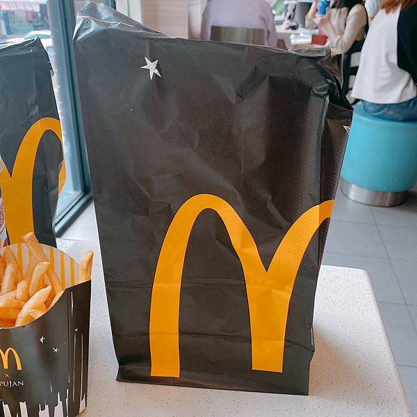 單是紙袋,就是黑色,然後映襯麥當勞的黃色LOGO ,時髦的很好看。