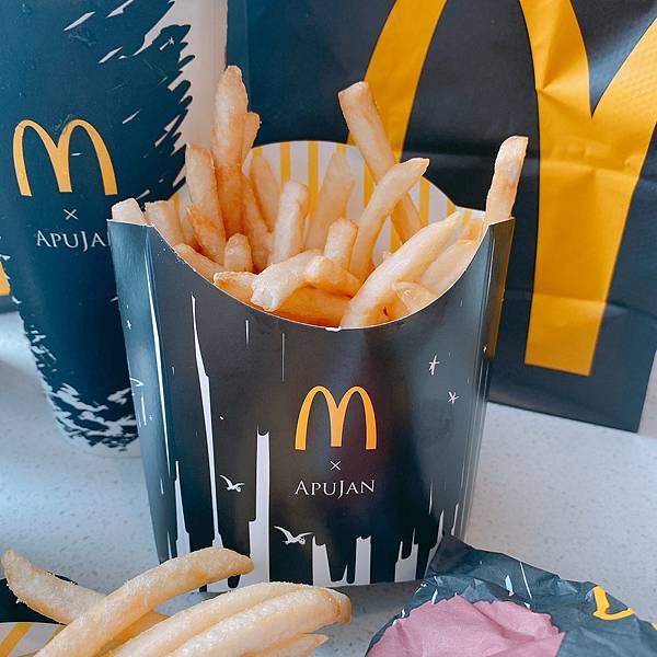 他跟我說:新的2款黑堡有特殊包裝,然後薯條只有中薯有限定包裝,飲料也只有中杯的才有限定包裝,然後點對限定包裝的食物,才會有黑色限定麥當勞紙袋!我到底以為我是在玩什麼破關遊戲嗎?哈哈哈哈哈,但我不確定我這樣是不是絕對成功的方程式,至少我昨天去都非常順利拿到限量包裝啦!