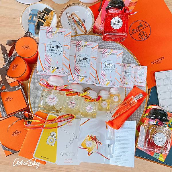 這次根據新品HERMES「Twilly Eau Ginger 淡香精」上市的相關贈品可說有夠豐富有夠多的!那個迷你Twilly如果你有固定在精品店買可以詢問一下你自己的Sales,一般來說應該都會留給主顧客;不然就是建議直接看是打電話、LINE等新光A8的HERMES香氛彩妝專櫃Sales去留貨結帳,除了有絕對必拿的迷你Twilly外,其他還有全新的「Twilly Eau Ginger 淡香精」包括針管香水、等比縮小超級無敵可愛的7.5ml、12.5ml的三種容量。