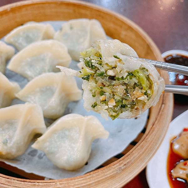 真的是吃過花素蒸餃你不會想再吃鮮肉蒸餃,其飽滿,厚實有些嚼勁的餃皮,同時新鮮又多汁的青菜豆乾粉絲內餡,飽滿也juicy很香,單吃就好吃,沾醬也好吃~這真的好吃,我都會點。