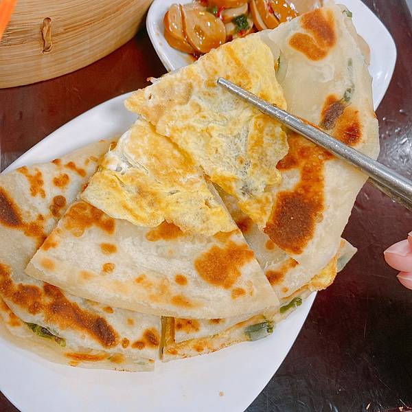 這就是很簡單、純粹的平凡見偉大的蔥油餅加蛋,咬得到那麵粉的香氣,搭配著蛋的甜味,簡單也美好!!!!