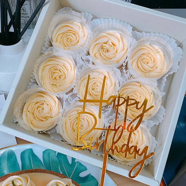 我朋友跟我說:我就看你什麼時候會吃膩這CreamTea!他除了8吋家常檸檬塔生日蛋糕,還一起訂了一盒9入的玫瑰檸檬塔給我。