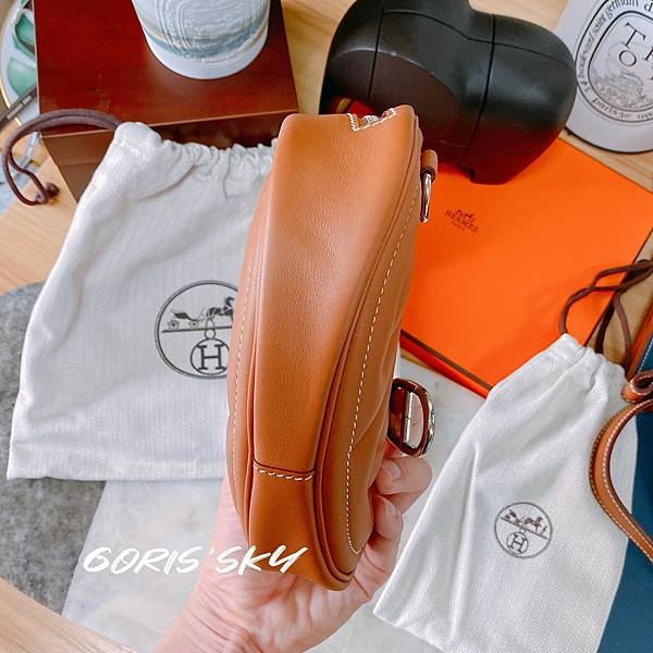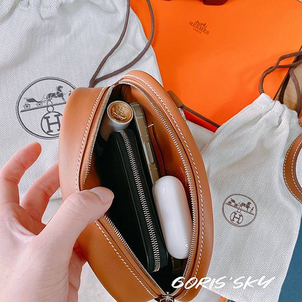 在台灣買到的第一個mini!HERMES mini Halzan奶茶裸》5種揹法馬鐙包(實搭)