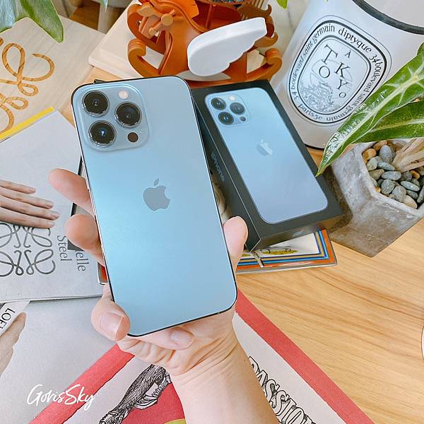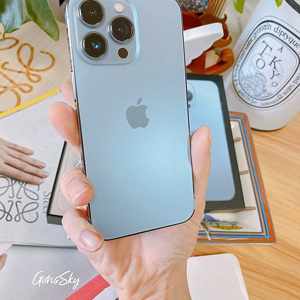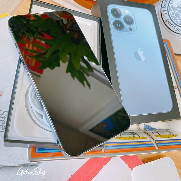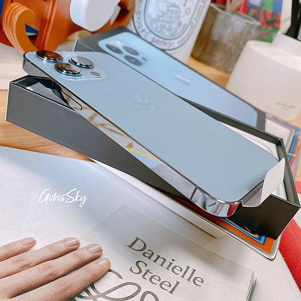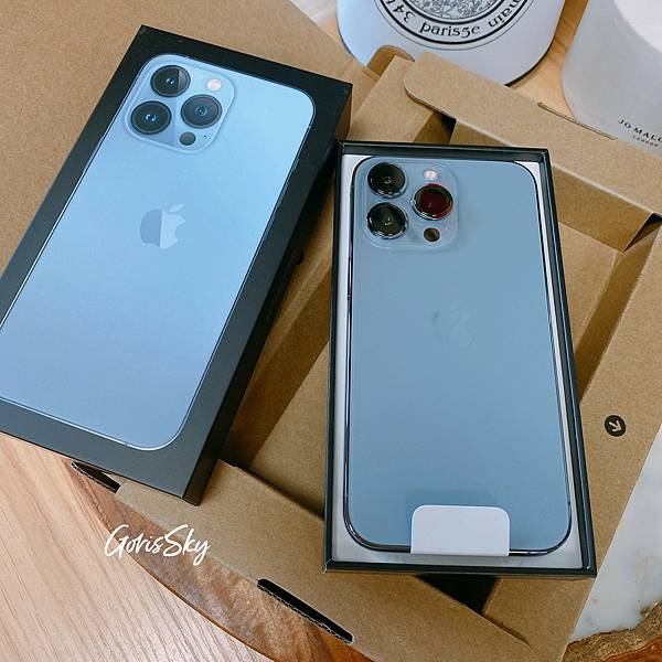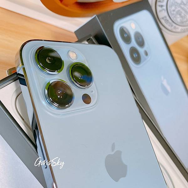 我覺得最美就是兩側金屬藍的邊框,還有鏡頭那圈圈透出藍色的框框,雖然啦,我身為個Apple老粉,電腦、筆電、平板、耳機、Apple TV、AirTag等都有買(唯獨手錶沒買過!哈哈,只買過送他當情人節禮物,),從iPhone4還是5用到現在,iPhone13 Pro真的好像跟iPhone12 Pro,甚至是我現在用的是iPhone11 Pro夜幕綠好像沒有太明顯不同,但拿到實機我目前現在依舊還是有夠興奮!!!哈哈哈