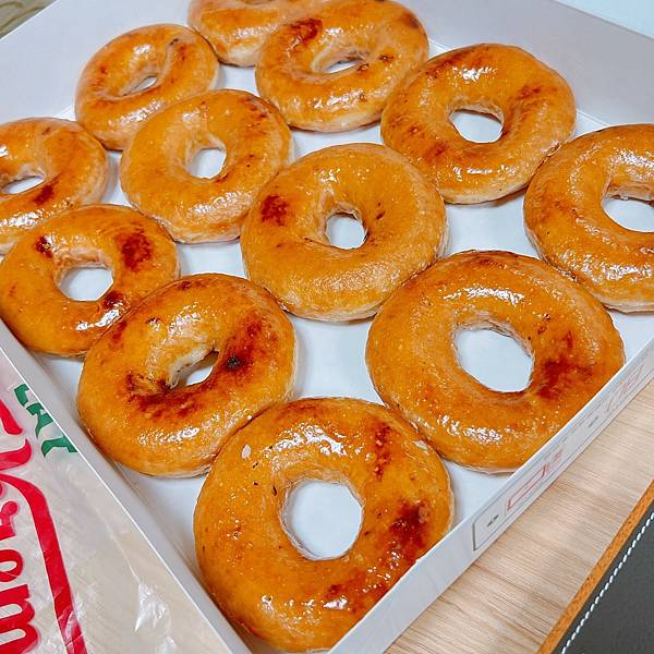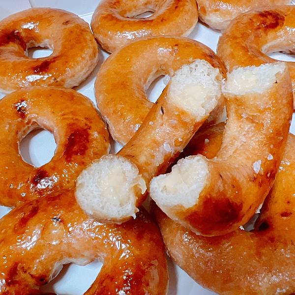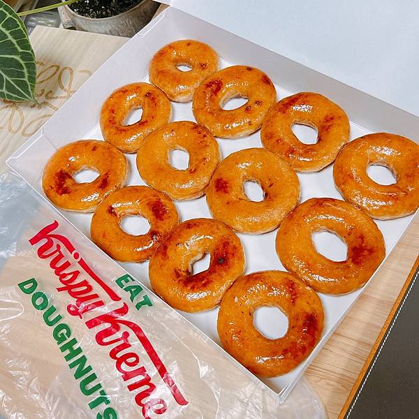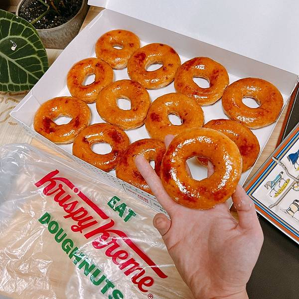 然後其實Krispy Kreme其他的口味甜甜圈我基本上都不吃,也沒啥興趣,就是甜上加甜,但我就會吃原味的,就很經典好吃,香烤布蕾則是就在原味上的烤過然後裡面加了卡士達這樣!很療癒~