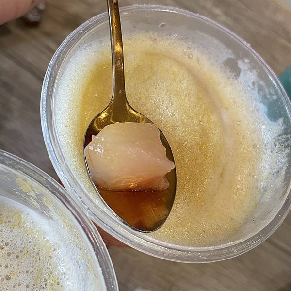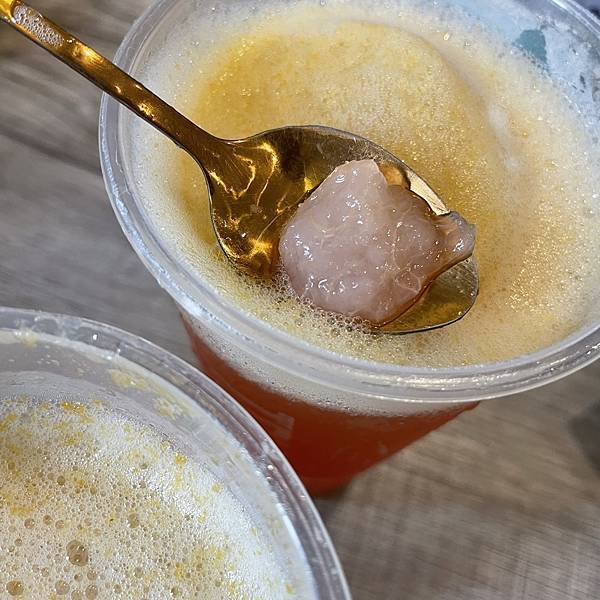 飲料本人美的耶!你看看你側邊的漸層感,還有那綿密的泡沫,重點是,裡面的水蜜桃果肉也沒在跟你客氣的加了很不少!茶味是茉莉花茶,因為我們想說水蜜桃本身就甜了,所以都點無糖就蠻剛好的,如果你怕太澀就3分糖吧!總之,意外發現這家飲料,意外跟到活動,但真的是有夠多人的,之後等活動結束經過再來買一下!!!哈哈