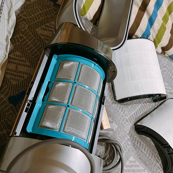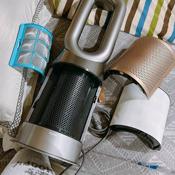 是半形的,所以兩邊都要重複動作,才算完成,因為我的HP02是整個圓筒型的濾網,這dyson三合一涼暖空氣清淨機HP09則是半邊的設計。
