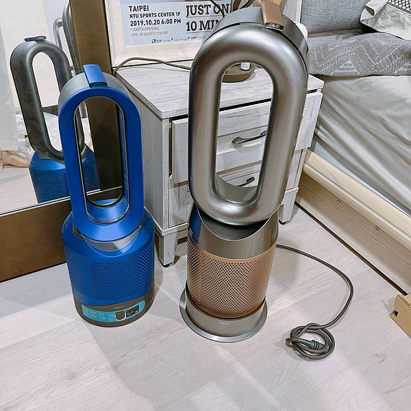 你看!我把我2017年買的dyson三合一涼暖空氣清淨機HP02跟這次買的dyson三合一涼暖空氣清淨機HP09兩個放在一起,大小台是不是很明顯見真章!!!!!!