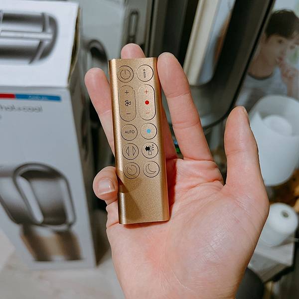 然後這dyson三合一涼暖空氣清淨機設計有一個好處就是他頂部是磁吸式的遙控器可以放在上頭,蠻方便的,就不太會掉,用完放在上面,有點類似iPad那種Apple Pencil的感覺?哈哈哈,總之我覺得這設計很很不錯,不用擔心遙控器丟來丟去。