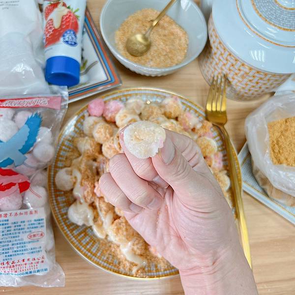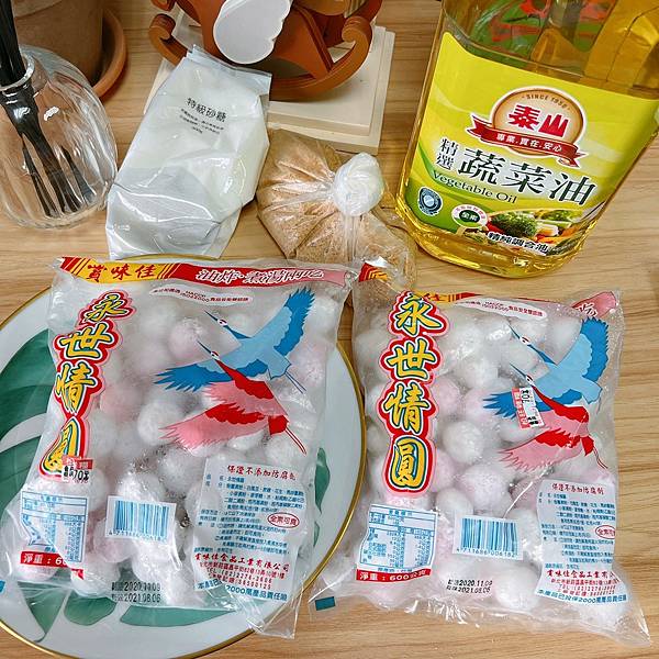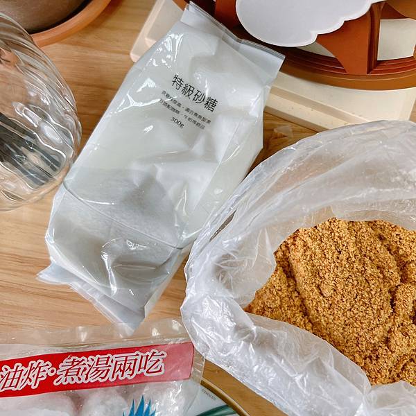 大概準備的食材就是炸湯圓專用的湯圓,砂糖、花生粉、沙拉油。