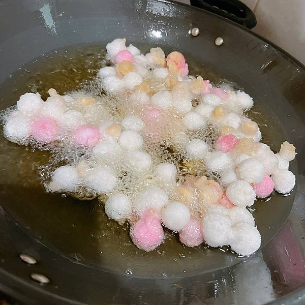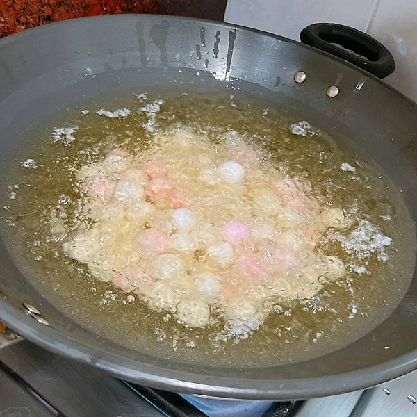 接著,就是準備油鍋,切記,油要滾了再放湯圓唷
