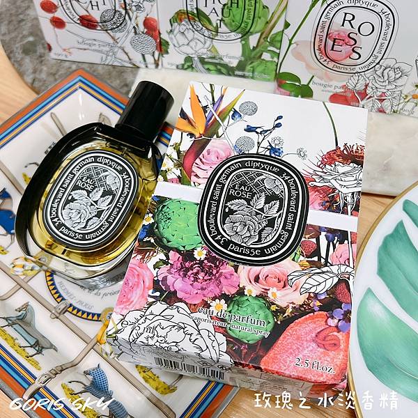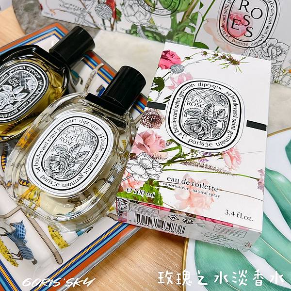 淡香水的部分層次本來就比較少一些,但也比較好駕馭、輕盈,相對淡香精來說會比較甜一點點,玫瑰的綠植香氣,帶些果香花瓣的純粹感,經典專屬於diptyque的玫瑰香氣。