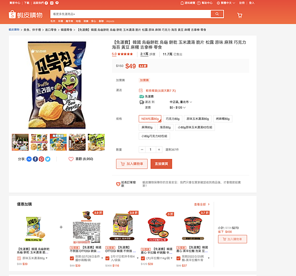 然後蝦皮也有些有在賣了,目前全部口味一共6款,包括巧克力吉拿棒、原味玉米濃湯、海苔、麻辣、烤麻糬,然後最新的就是松露!