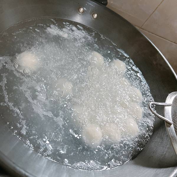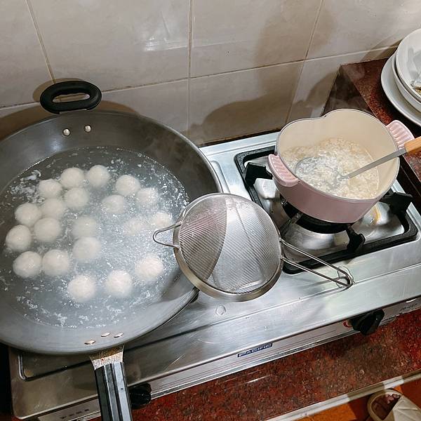 我自己在煮,元宵會另外滾熟這樣,不會在湯裡滾。
