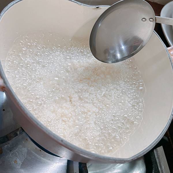 酒釀水滾再放,量的部分自己斟酌,然後滾越久的話,酒香會比較淡,這也是自己斟酌。