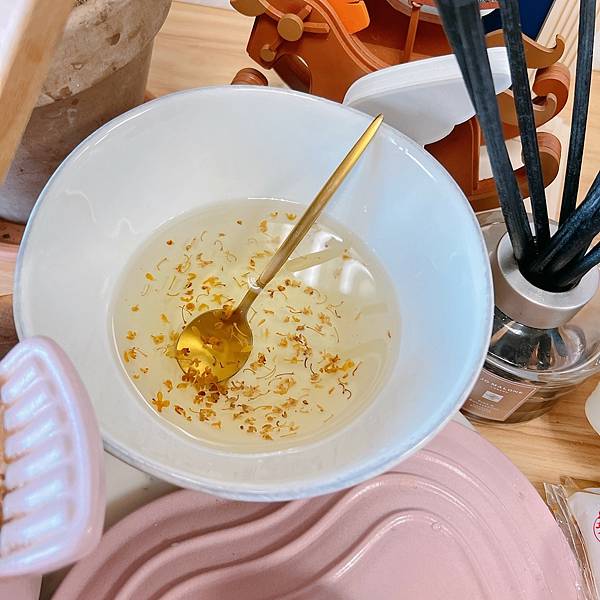 你不吃酒釀也沒關係,務必要買他們的桂花蜜!!!!一大包才50元很夠吃~你用糖水煮熱湯後,元宵我都另外滾後,桂花蜜退冰依照你個人喜好,給它加上個一小匙之類就桂花芝麻元宵的好香好好吃!!!