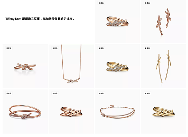 這個新的Tiffany Knot系列目前有戒指、手環、項鍊、耳環等,然後目前也只有做玫瑰金跟黃K金兩種。