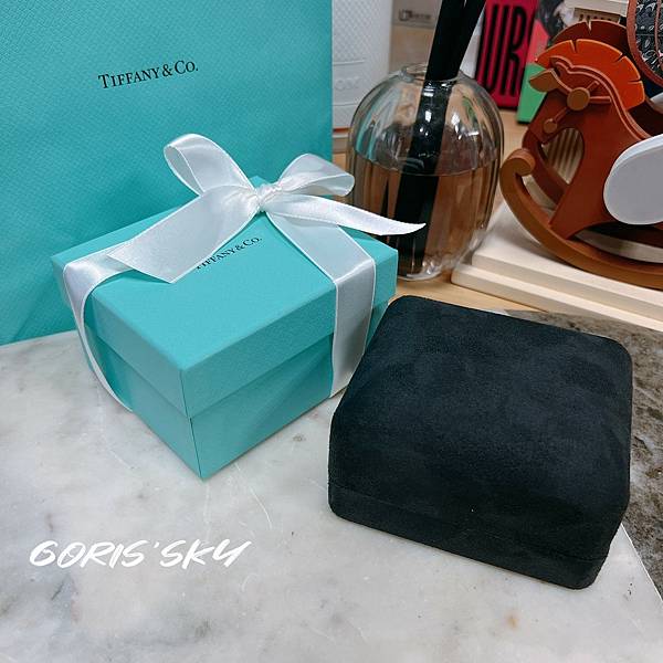 不過我也是第一次知道TIFFANY & Co.用來裝K金珠寶的是這種黑色絨布盒子,不然我一開始還以為也是藍盒?之類,但應該就是只有鑽戒才是藍盒?我也不是很清楚。