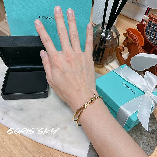 我特別喜歡TIFFANY & Co. Knot雙排鉸鏈手環它那鎖結感,很有纏繞感的好看,又是雙圈這樣。