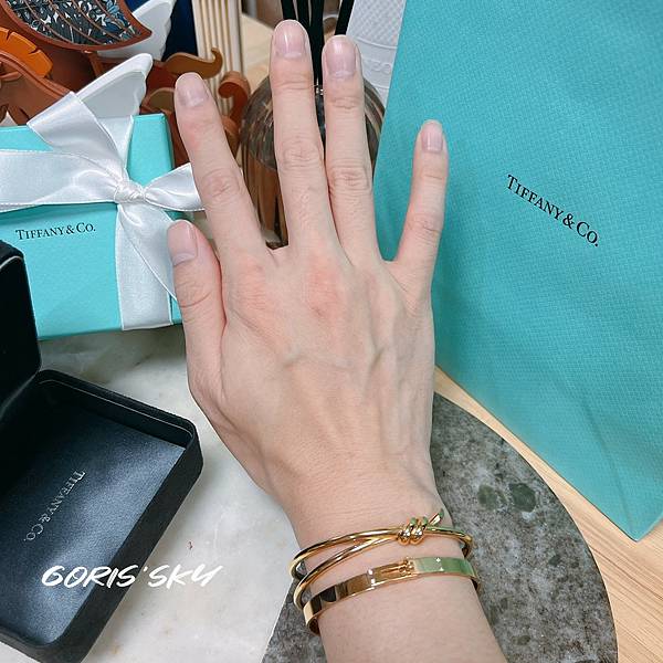 單戴TIFFANY & Co. Knot雙排鉸鏈手環其實就蠻好看的,也因為他的穿戴方便,使用上會更輕易一些。